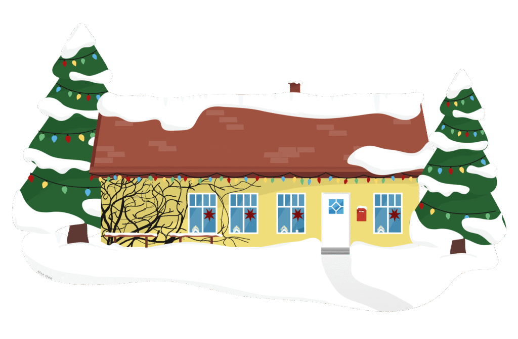 Seasonal illustrations of ’Skånis’, the yellow union house that’s central to LundaEkonomerna student life. Created in Illustrator.