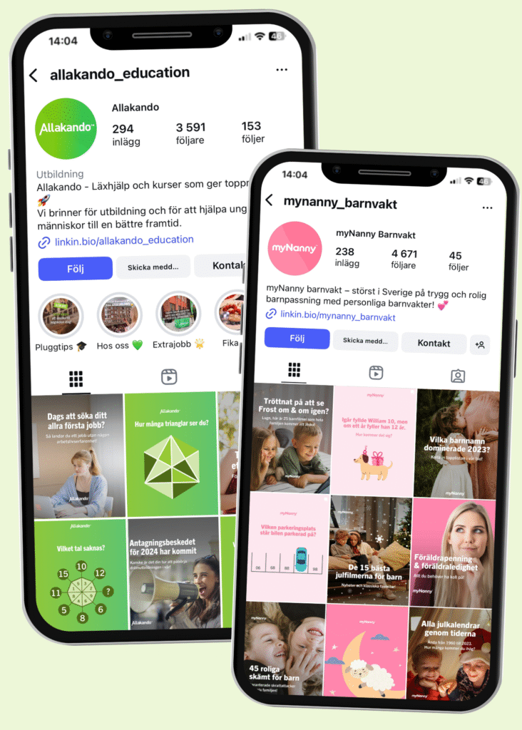 As Marketing Assistant at Allakando, I was tasked with creating Instagram content for both the brand and its sister company, myNanny. Keeping everything on-brand and tailored to our target audience, I designed posts that supported CRM goals while driving followers to articles and blog posts I wrote. From there, readers were guided to key landing pages, helping convert curiosity into results!